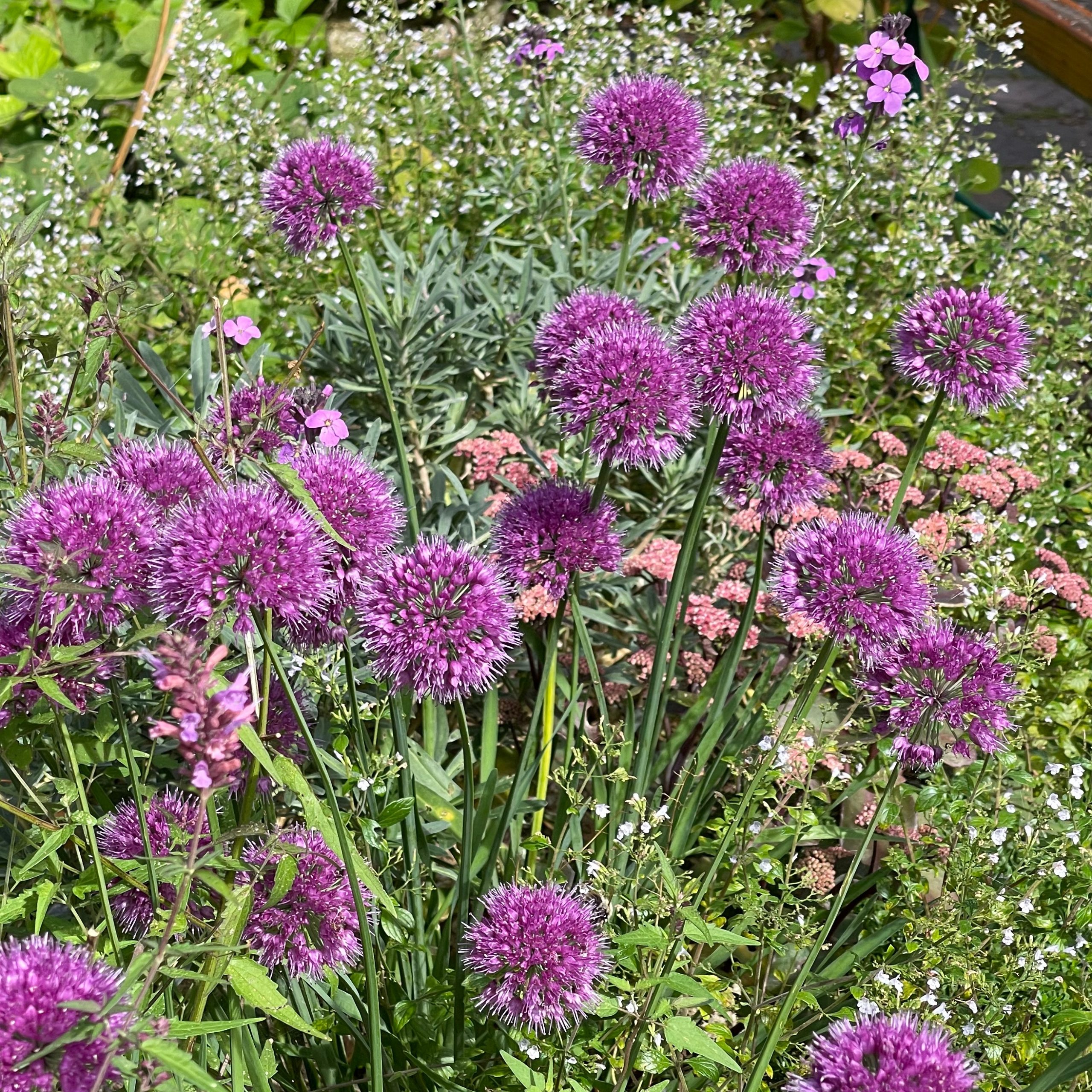Sehr farbintensive Allium-senescens-Hybride mit typischen kugelrunden Blüten in schönstem dunklen magenta-violett. Die Blüten stehen auf standfesten Stängeln über graugrünem Laub und bilden eine hervorragende Wintersilhouette. Tolle Insektenweide, besonders beliebt bei Schmetterlingen und Hummeln. Gedeiht auf einer Vielzahl von Böden und Standorten, wichtig ist ausreichende Besonnung. Eine unserer liebsten Zierlauch-Sorten!