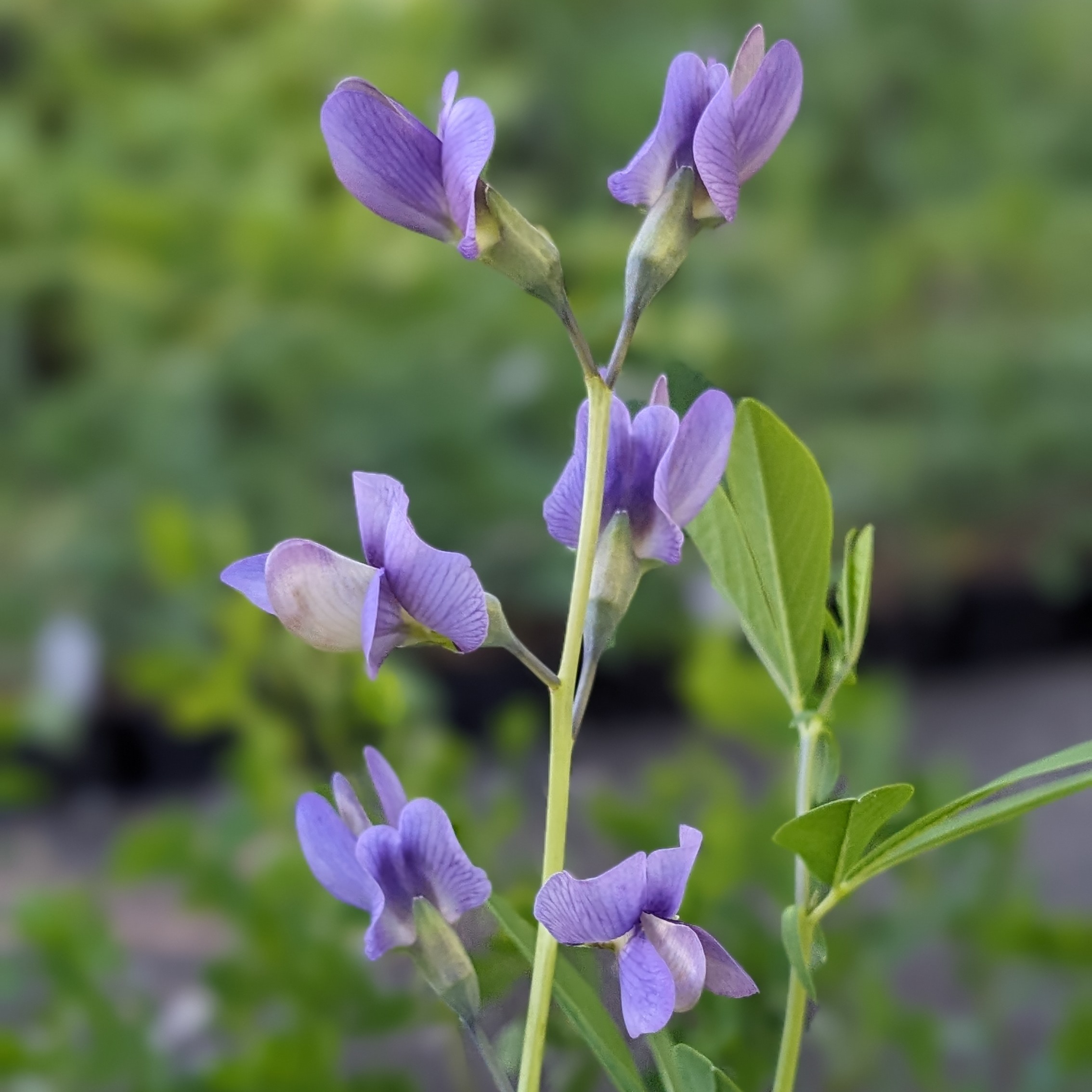 Wildart mit violettblauen Schmetterlingsblüten in langen Blütentrauben. Blaugrünes, attraktives Laub, welches bis in den Spätherbst attraktiv bleibt.
