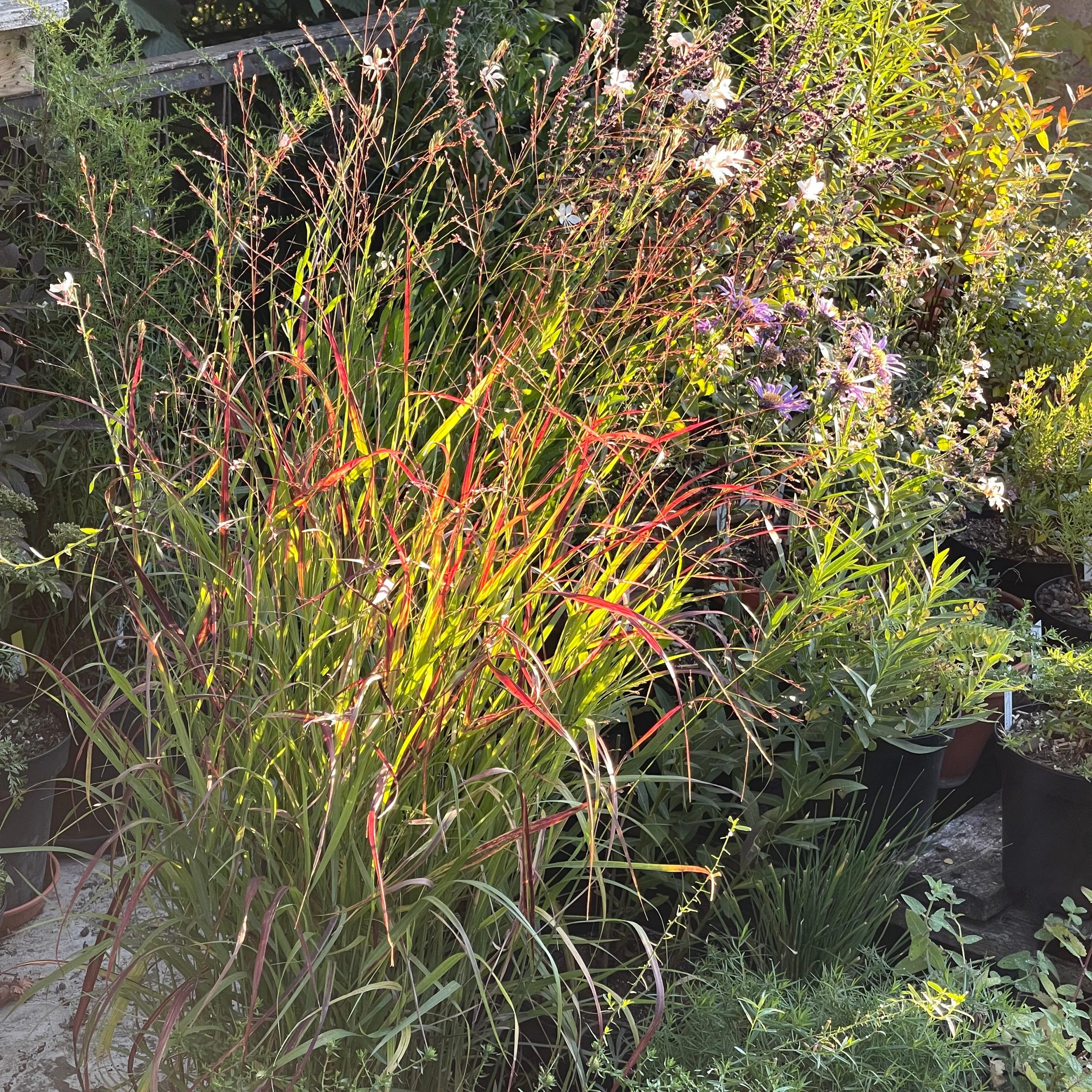 Unsere Lieblings-Rutenhirse! Die Blattspitzen färben sich bereits ab Juli dunkelrot; frühe intensiv rote Herbstfärbung; ausgezeichnet standfest! Besonders elegant wirken die rotvioletten kugeligen Blüten. ‚Shenandoah‘ ist eine eher langsam wachsende, ausgezeichnete Sorte von Dr. Hans Simon