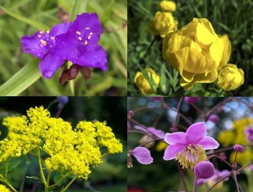 Mit dieser Pflanzenkombination holt man sich geballte gute Laune in den eigenen Garten. Leuchtendes Gelb und Violett – umrahmt von frischem Grün – sind in der Farbenlehre für das geistige Wohlbefinden förderlich, und auch im Staudenbeet heben sie die Stimmung eines jeden Betrachters. Wohl fühlt sich diese Staudenkombination an einem sonnigen – halbschattigen Standort mit frischem bis feuchtem, lehmhaltigem Boden.
