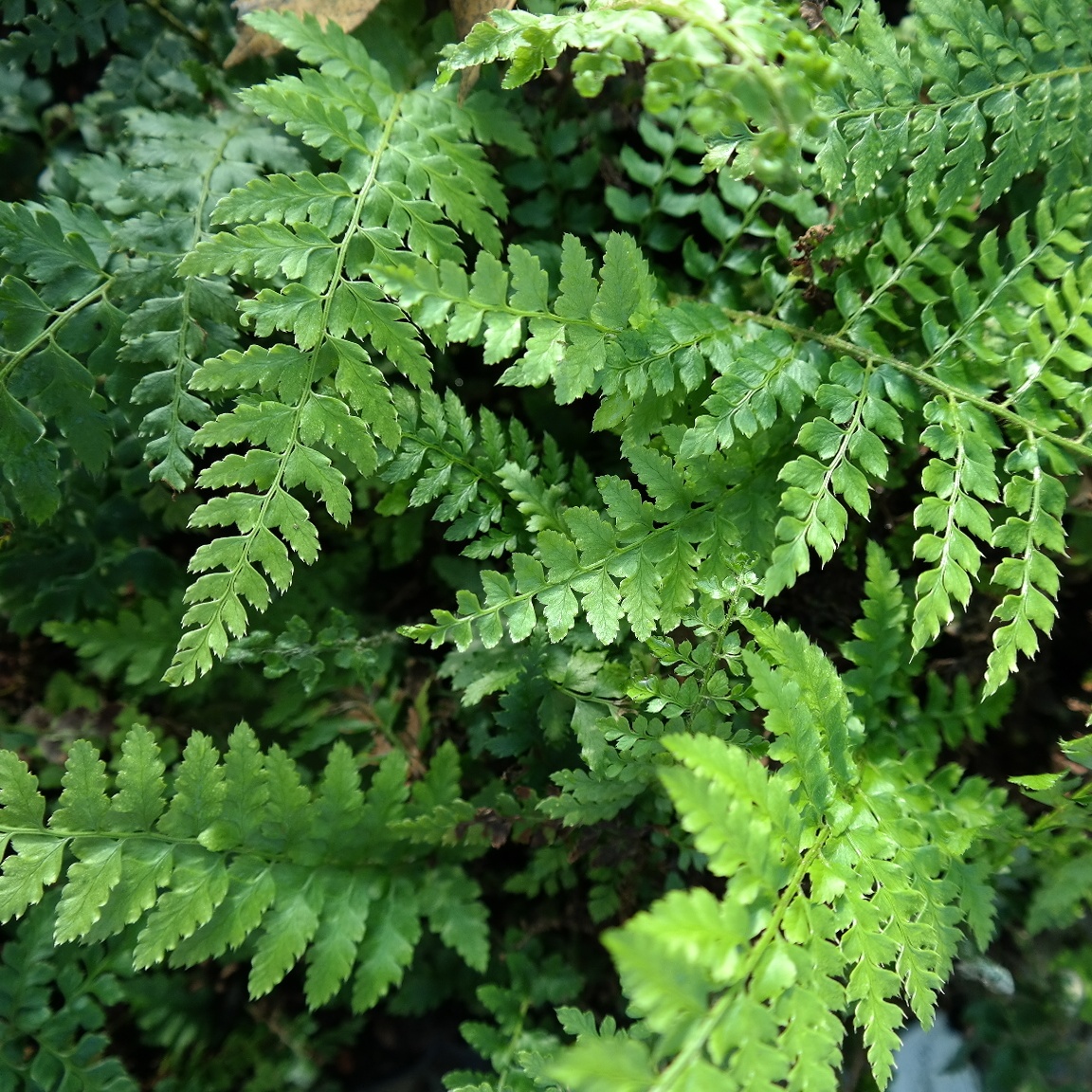 Wedel im Austrieb hellgrün, dann matt-dunkelgrün, doppelt gefiedert, wintergrün. Wuchs horstig, breit trichterförmiger Habitus; verträgt eingewachsen kurze Trockenphasen; dekorative Auslese der heimischen Wildart.  (Syn. ‚Proliferum Herrenhausen‘)