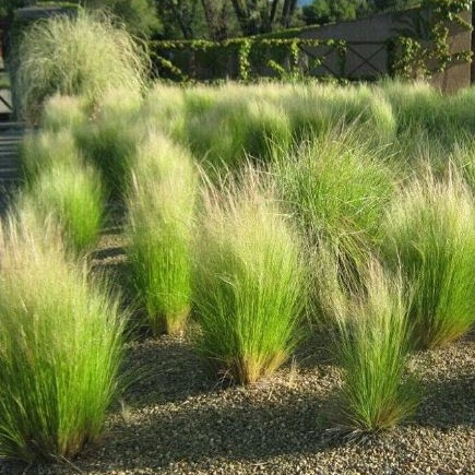 Fedrige grünliche Blüte; sehr feines, fast haarartiges Laub. Eher kurzlebig, aber aussamend; für leichte, durchlässige Böden; sehr schön, wenn es sich im Wind bewegt! (Syn. Nassella tenuissima)